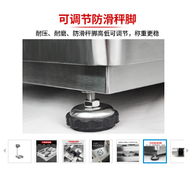 · 高度強不銹鋼304包橡膠可調秤腳,有效防止稱重時電子秤移動偏移造成重量偏差。